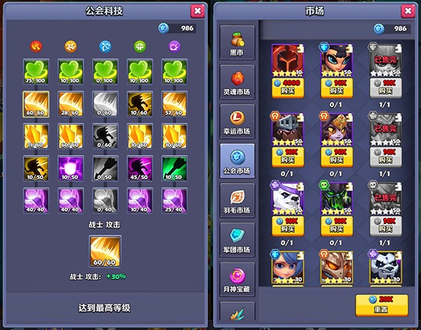 首先是全面提升英雄的公会科技,早期玩家们可能因为缺英雄,而着急拿去公会市场换英雄。但是到了后期14星,用来提升不同职业的属性将更为重要。该系统下所有职业第一排为加生命,上限100级为+50%。第二排除牧师加闪避外,其他都是加攻击,上限60级为+30%。第三排除游侠加闪避外,其他职业为加暴击,上限60级为+30%。
