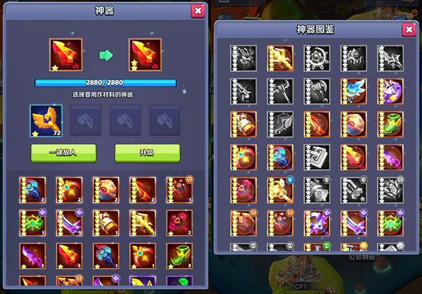 接着是单体有着大量提升但可遇而不可求的神器系统,虽然他跟符文一样也是各类属性搭配提升的装备系统。但最大的特色在于增加了,能量值的引入和针对特定职业+88%伤害的巨大增幅。此外特定的阵营神器,可以算是额外的伤害增加,当做三属性神器来看待就好。神器系统十分强大,能量和职业针对的引入几乎让这块成为了PVP对战的一个策略点,他不像科技和装备是一成不变的,玩家们需要的是针对不同的场合,不同的敌人随时进行切换。相信玩过巅峰排位的玩家对此会有所理解。但神器的缺点依然十分明显,几乎没有特定的获取渠道,好的神器、阵营专属神器只能靠人品了,想收集齐的话那是太难了。