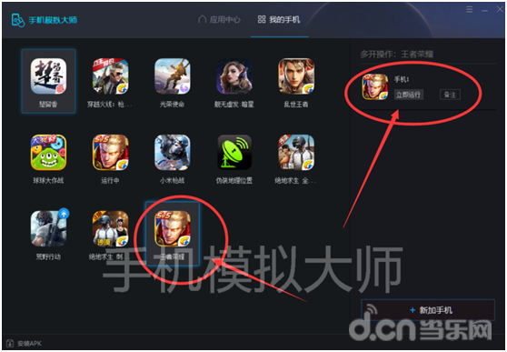 2.安装完默认会自动启动。以后要运行,可以进“我的手机”,点击对应游戏图标,然后点击右边手机1下面的“立即运行”。