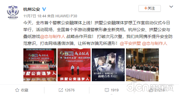【图17】《恋与制作人》成为首个与公安联动的手游,引起广泛的正向讨论