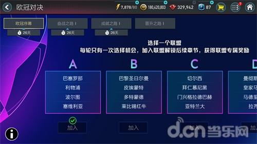 在这个章节中,玩家可以从A、B、C、D四个联盟中选择一个联盟加入,而欧冠每轮将只有一个选择机会,加入联盟后将解锁后续章节并获得联盟专属奖励。