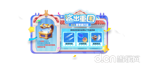 鲨出重围S14赛季通行证现已上线,解锁进阶版后获得拖尾特效、护盾特效、武器装扮等专属资源,达到80级后还可解锁高级资源宝箱,开启后获得传说品质武器、拖尾和护盾!