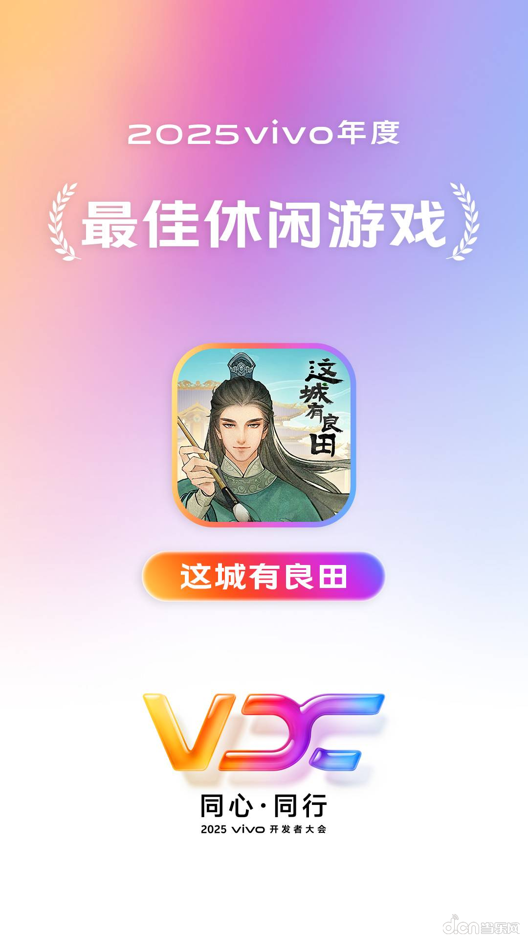 新作《重生日记》荣获「2025vivo年度最受期待游戏」;经典古风悠闲养城手游《这城有良田》双喜临门,一举摘得「2025vivo年度优秀小游戏」和「2025vivo年度最佳休闲游戏」两项殊荣。