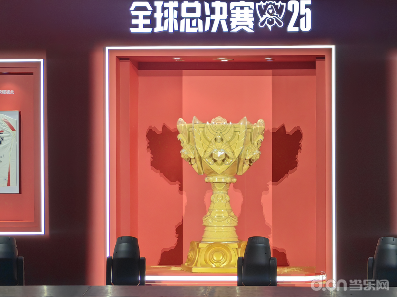“玩家助威纪念展”的旁边,特别制作了一个金色流沙奖杯。随着玩家和选手对LPL队伍的应援热情逐渐高涨,奖杯中的金沙会越来越多,当金沙注满时,场地里下起“金色的雨”,为当天的比赛开幕助威