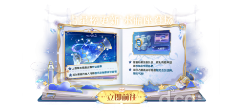 神秘【水瓶座】占星阁璀璨开放!参与转盘并完成赠礼任务获取占星石,可兑换传说星座礼物、星座星环、聊天气泡等稀有收藏品。成为星座代言人可获得签名定制款会议面板,尽享专属星座奖励。