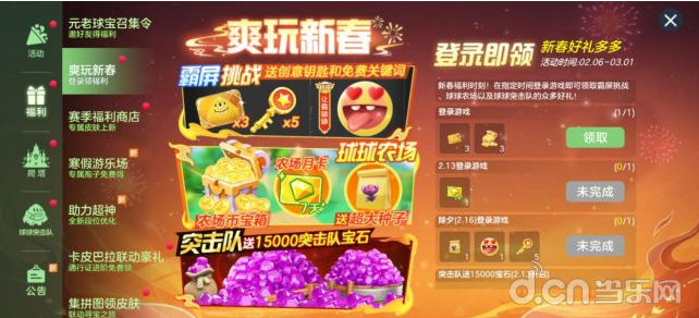 2月6日至3月1日,登录游戏即可获得海量资源,「霸屏门票」、「农场币礼包」、「农场月卡(7天)」、传说关键词「让我舔舔」、「宝石*15000」等丰厚豪礼上线即赠,不容错过。