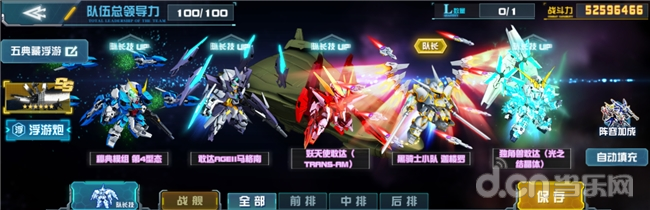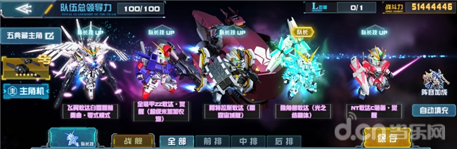 阵容一:5典主角。队长为独角兽敢达(光之结晶体),队员为飞翼敢达白雪姬前奏曲·零式模式、全装甲ZZ敢达·觉醒(超级米加加农炮)、阿特拉斯敢达(雷霆宙域版)、NT敢达C装备·觉醒。战舰推荐渔火